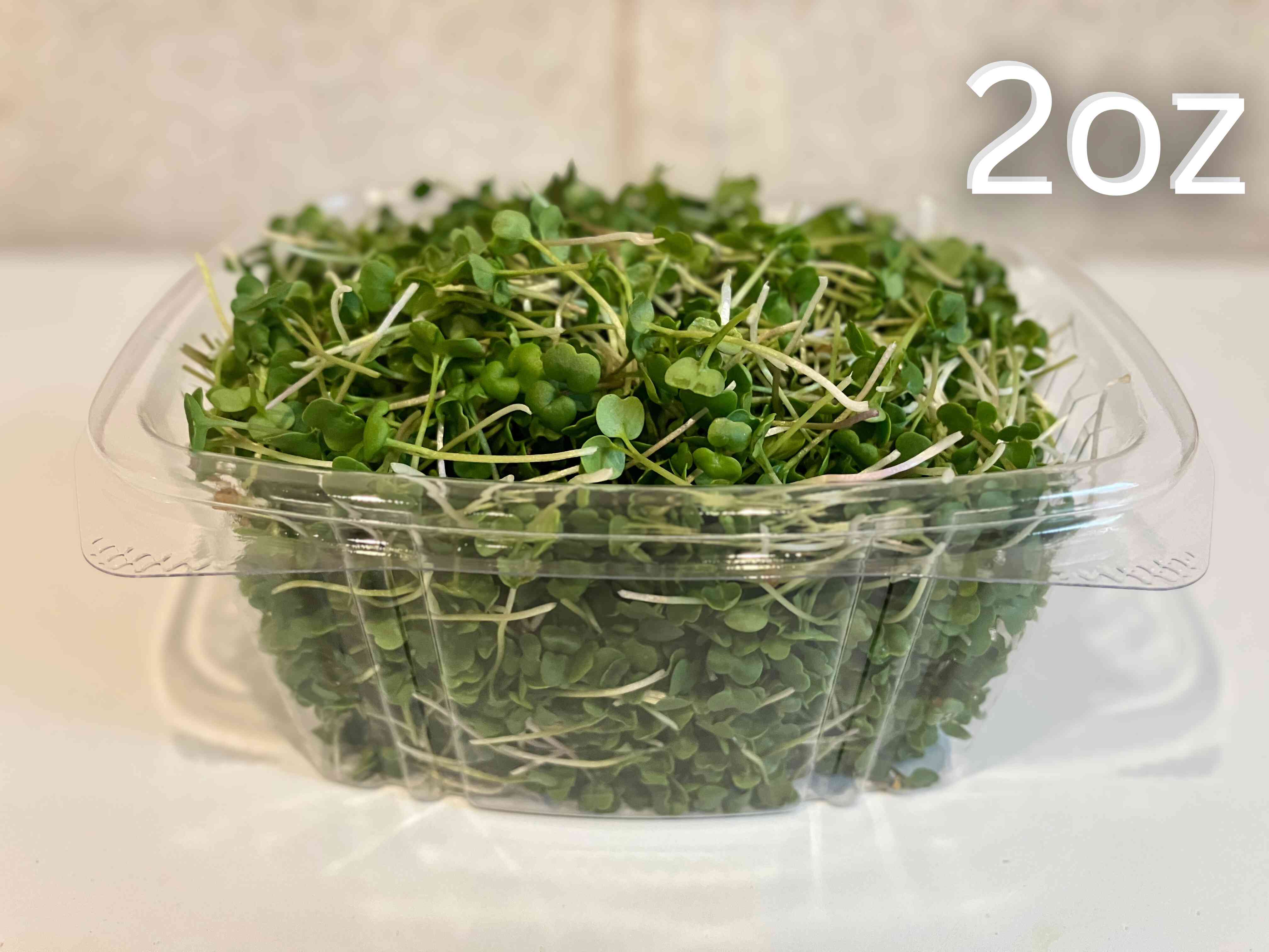 Arugula microgreens have a bold, peppery, slightly tangy taste. They are tender yet flavorful and bring character to any dish. Top salads, pizzas, sandwiches, or grain bowls, or use as a garnish to enhance both color and flavor. Their distinctive taste pairs well with creamy, savory, or simple ingredients.